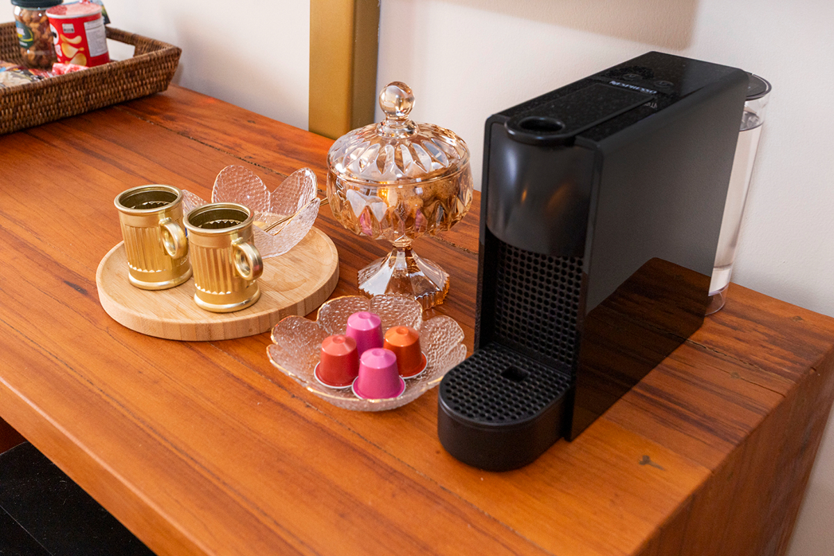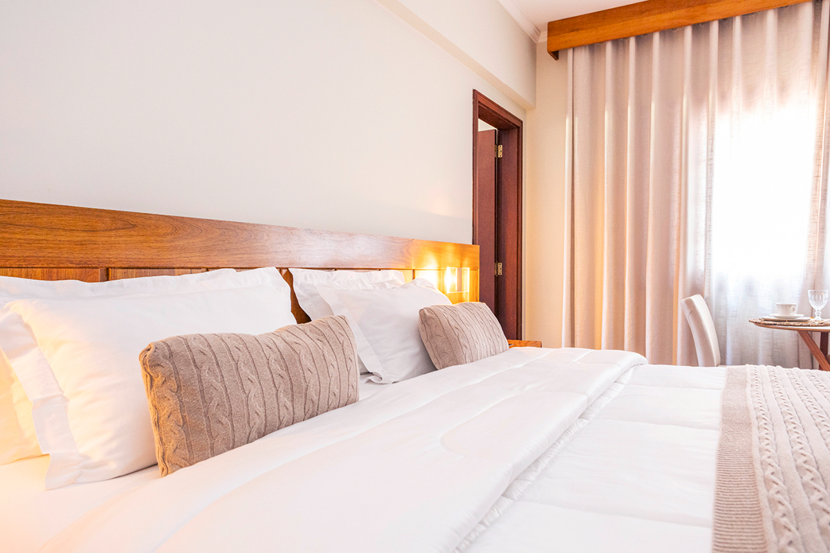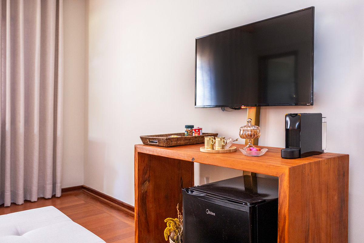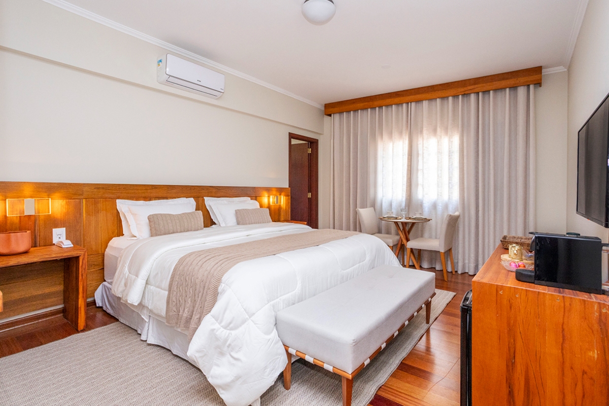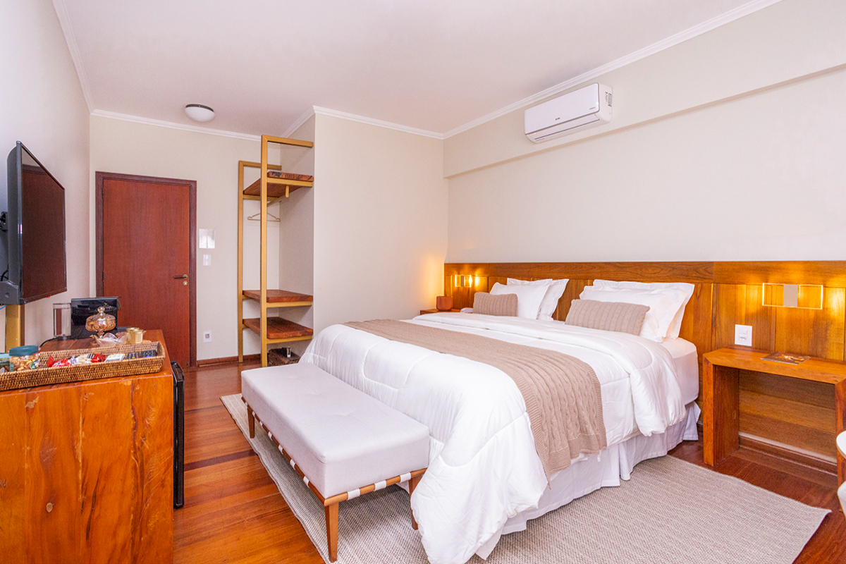 Nesta suíte, o essencial se revela nos pequenos gestos de conforto.